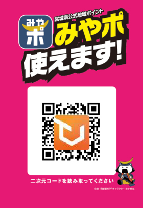 みやぎポイントが利用できるお店には、右のような二次元コードが設置されていますので、スマートフォンでコードを読み取って、利用ポイントを入力してください。