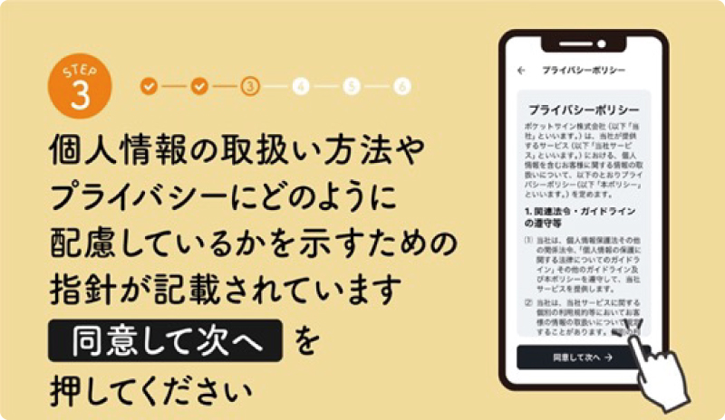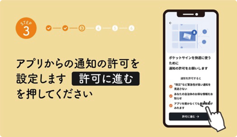 ※「ポケットサイン」を新規登録した直後の場合などは➋と➌がスキップされる場合があります ※画像はイメージです
