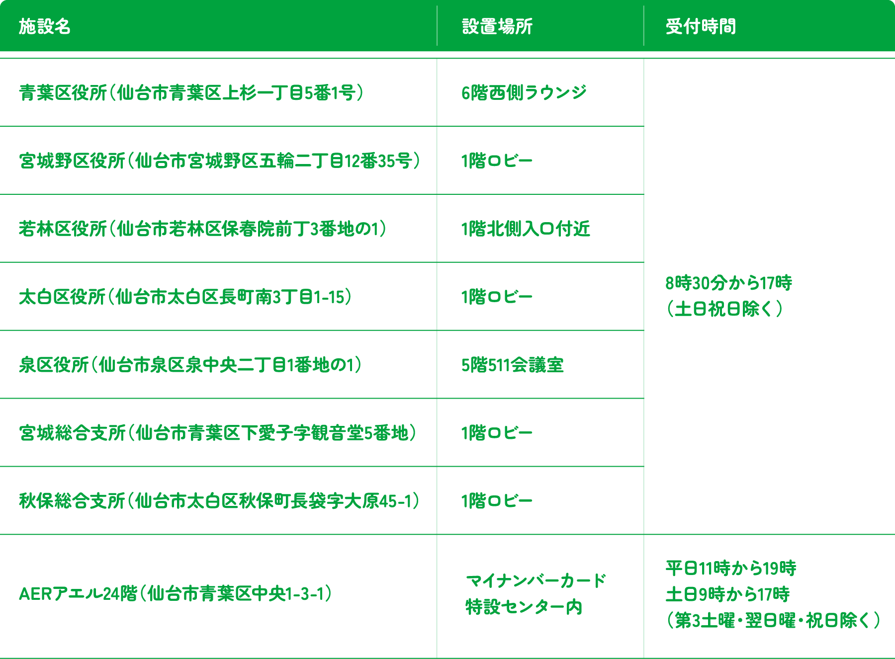 宮城野区役所:3月10日(火)、11日(水)は、1階守衛室向かいに移動いたします。